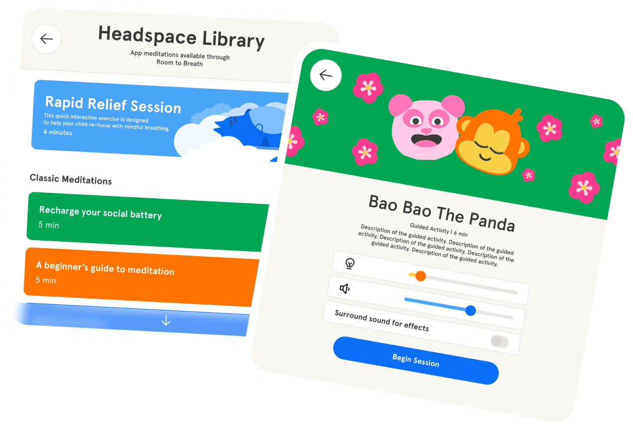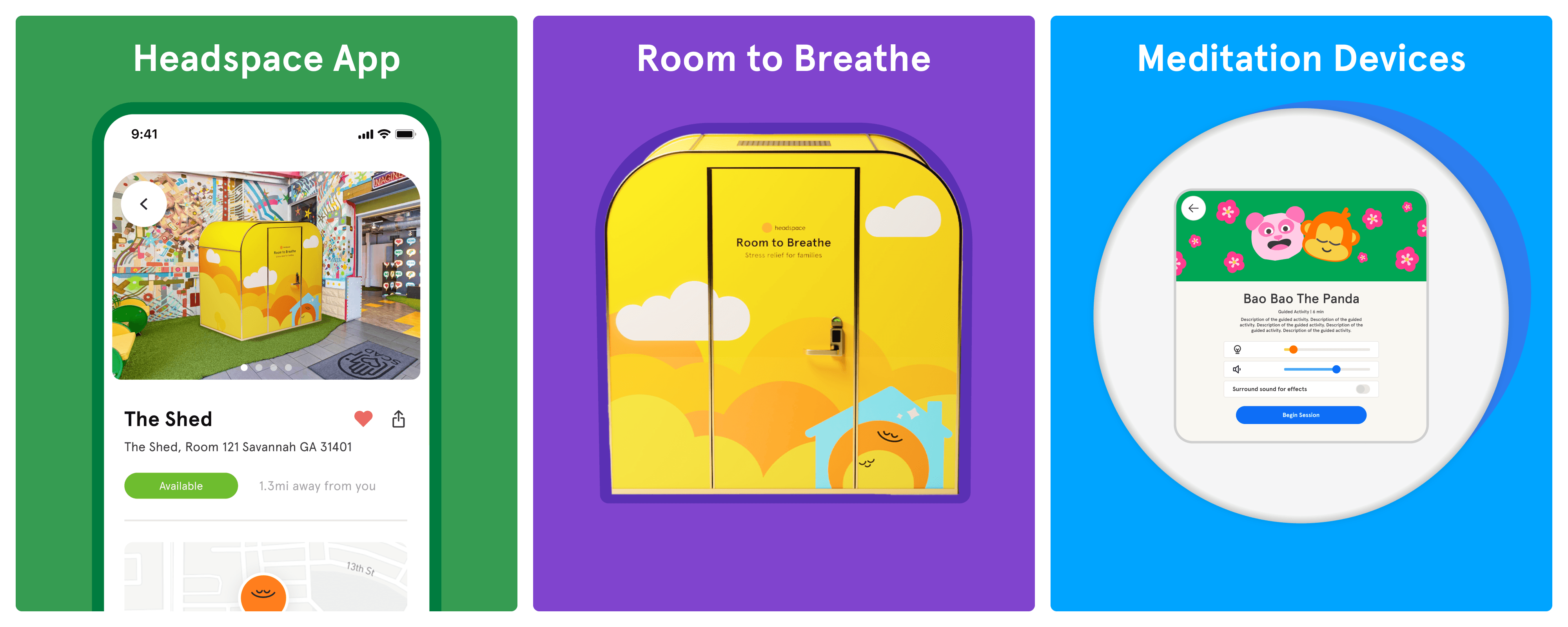 Room to Breathe offers an private, immersive meditation and mindfulness experience for families in public spaces, utilizing the lessons and methods offered by Headspace.