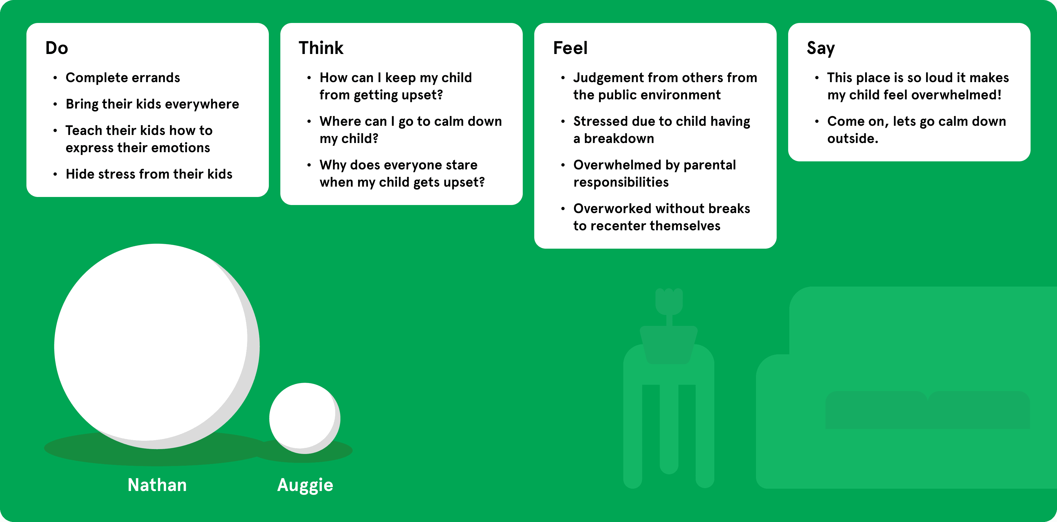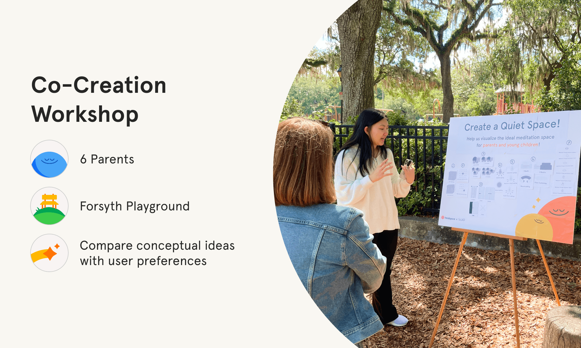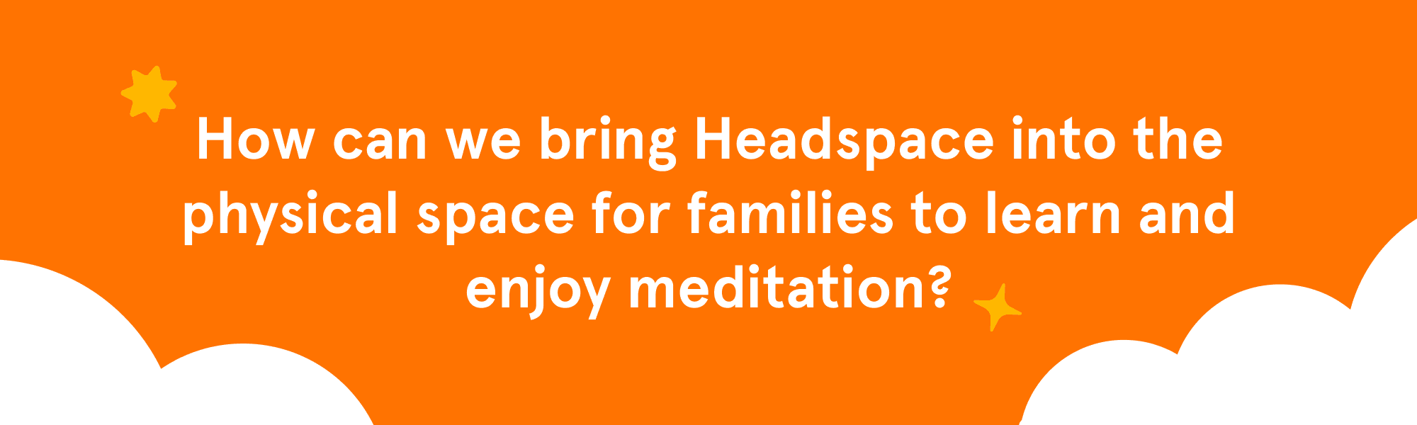 Rather than focus on innovating a select feature or facet of Headspace, we decided to start with a target demographic and an overarching goal for our project: designing for families and children, within public spaces.