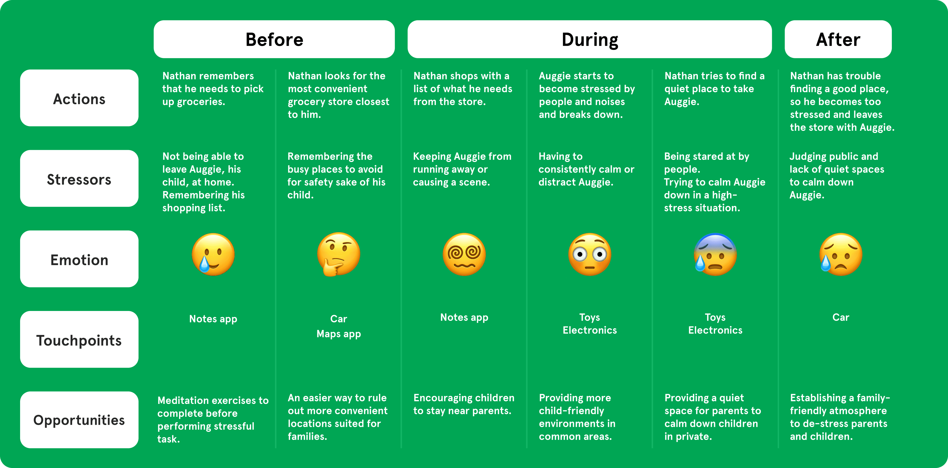Through artifacts like journey maps, personas, and user flows, we connected our extensive research to key moments and pain points to address in our concept.